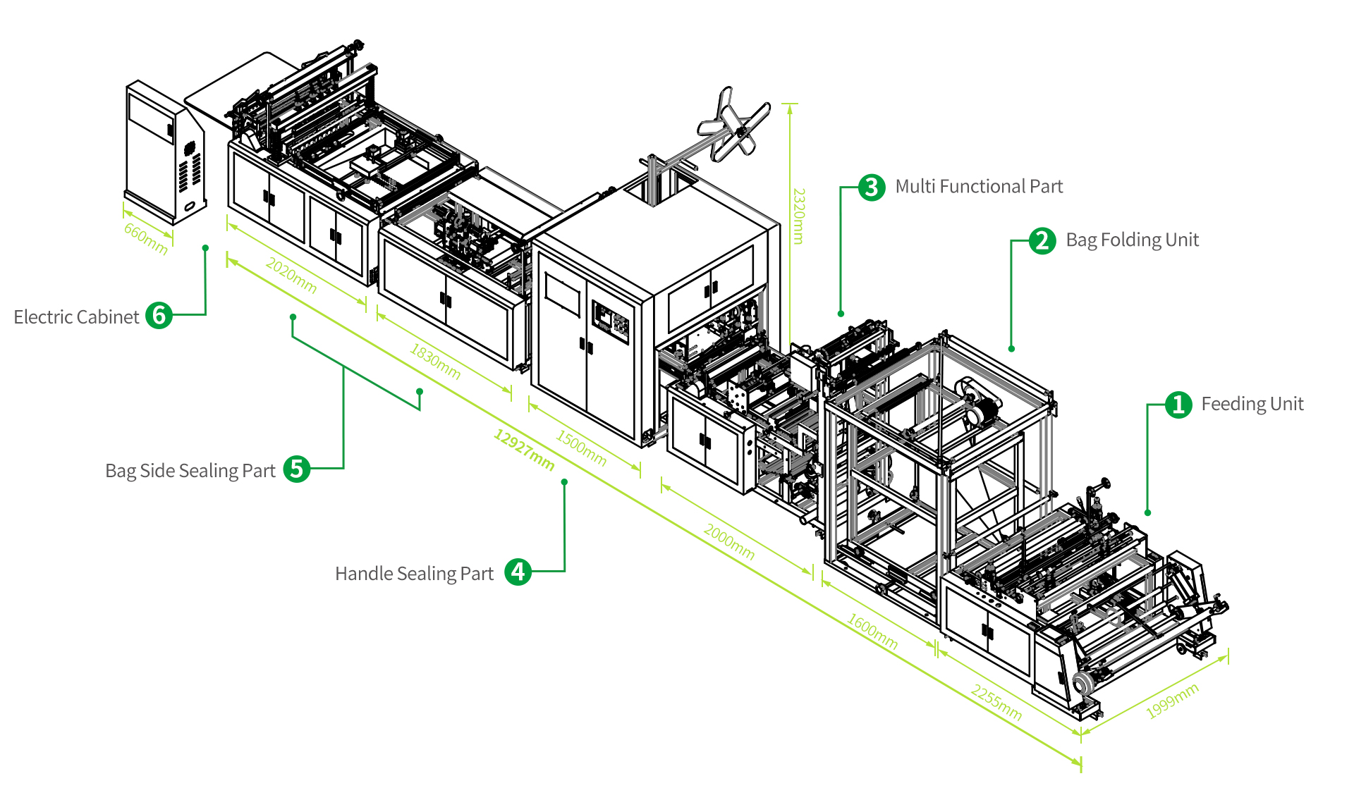 | Oyang 15s líder | Sacolas com alças de loop | 60-80 PCs/min, suporta muitos materiais |